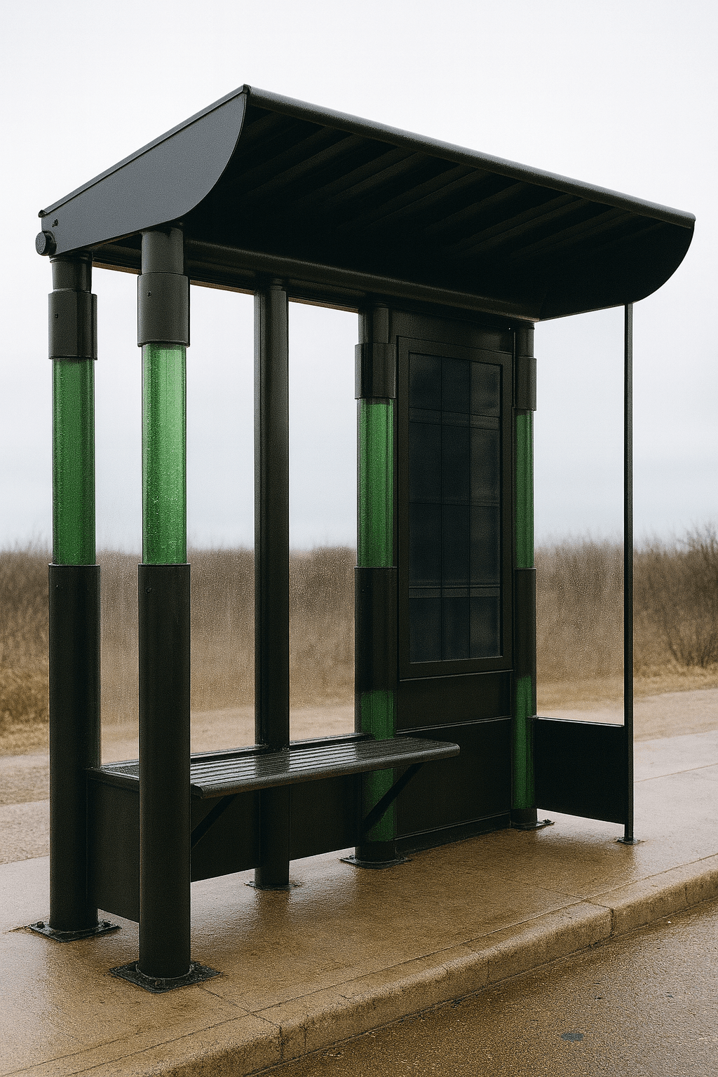 ENVIRO Algae Bus Stop es una marquesina de autobús sostenible de nueva generación que integra columnas activas de microalgas como estructura principal, combinando infraestructura de movilidad urbana con mejora ambiental.